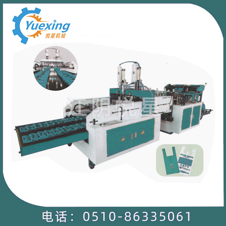 該機適用于對高密度聚乙烯(HDPE),低密度聚乙烯(LDPE)筒狀本色和彩印塑料薄膜進行熱封熱切制袋,雙刀雙道生產線,配備機械手自動沖,從送料、封底、切斷、沖口、折袋、輸送一次性完成,自動化程度高,經濟效益好。