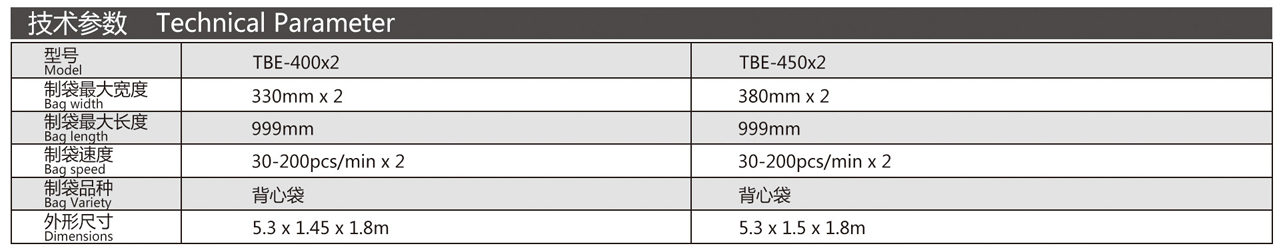 YXMB-400x2/450x2型全自動熱封熱切制袋機